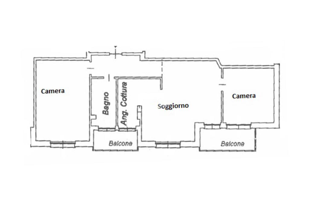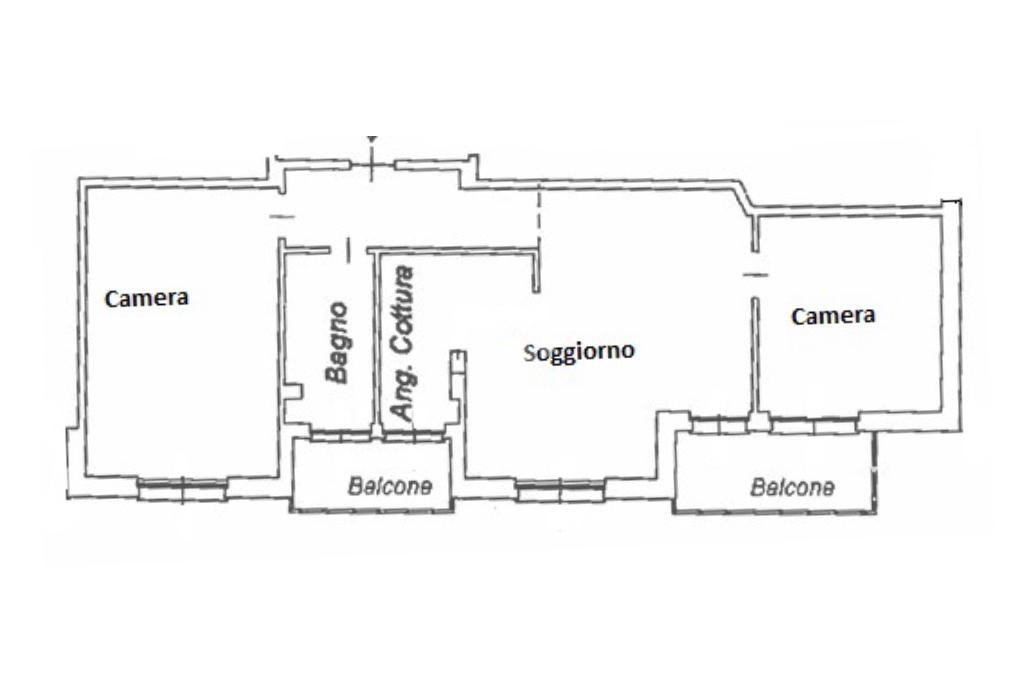 All'ingresso, un corridoio conduce a un luminoso soggiorno con accesso diretto a un balcone, ideale per momenti di relax all'aperto. Dal soggiorno, attraverso un arco, si accede alla cucina con uscita su un altro balcone, che collega anche il bagno.