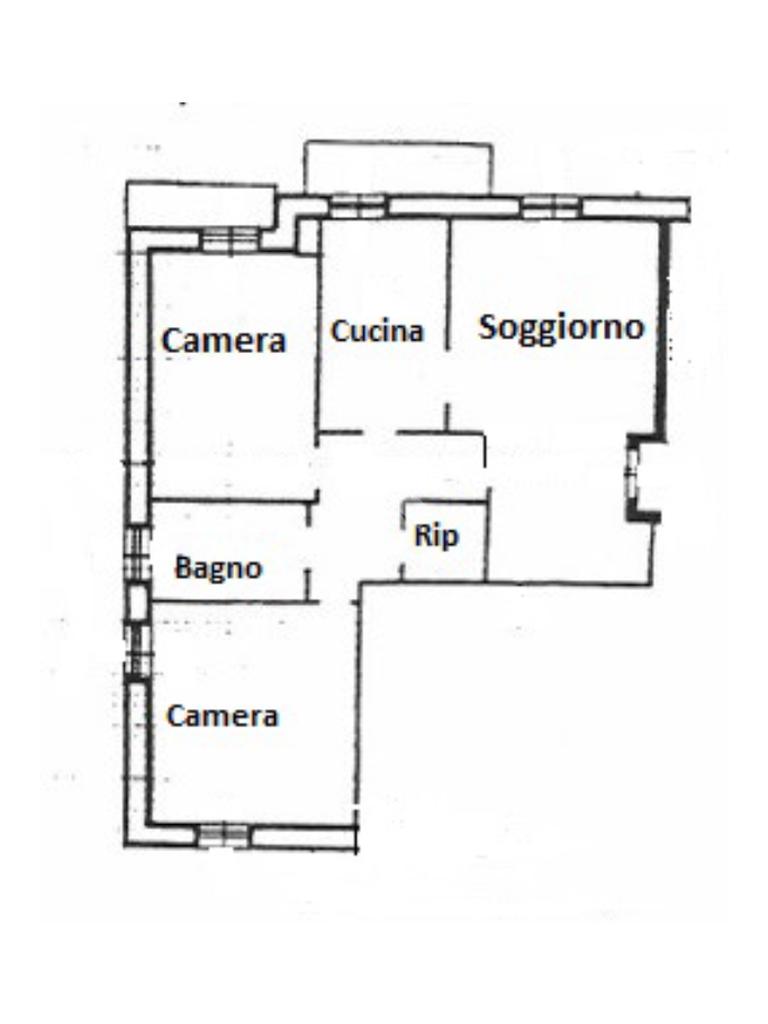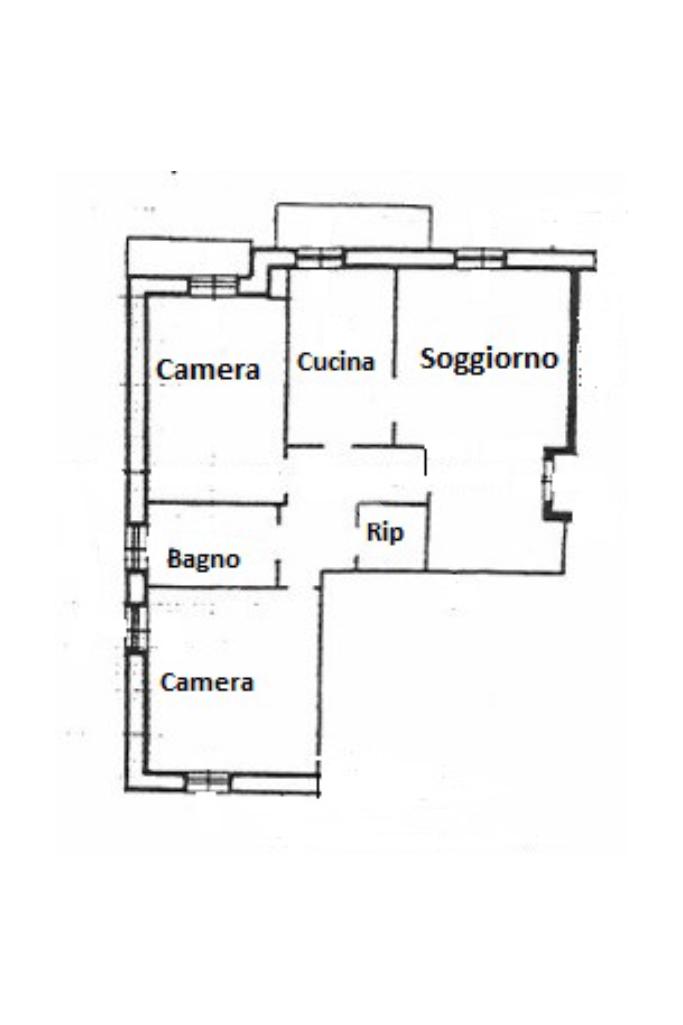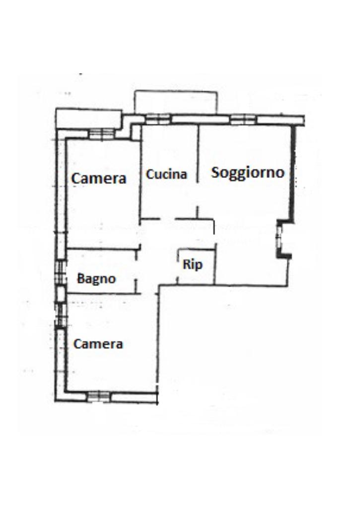 L'appartamento offre una disposizione funzionale degli spazi, con due camere da letto luminose e un soggiorno accogliente.