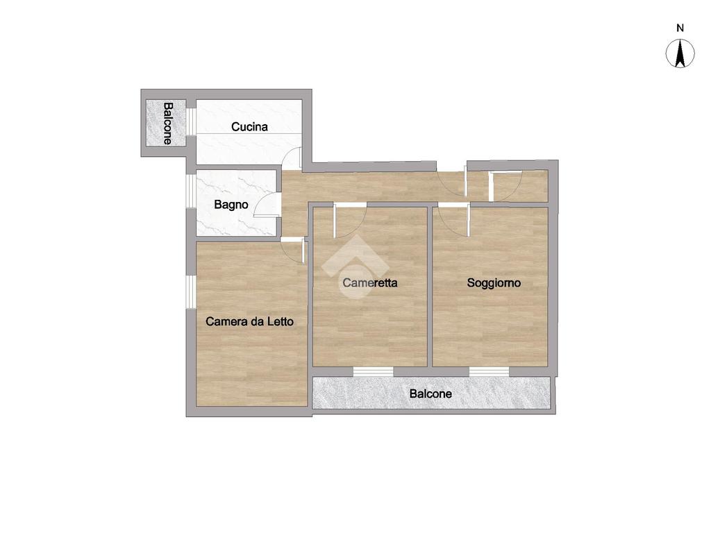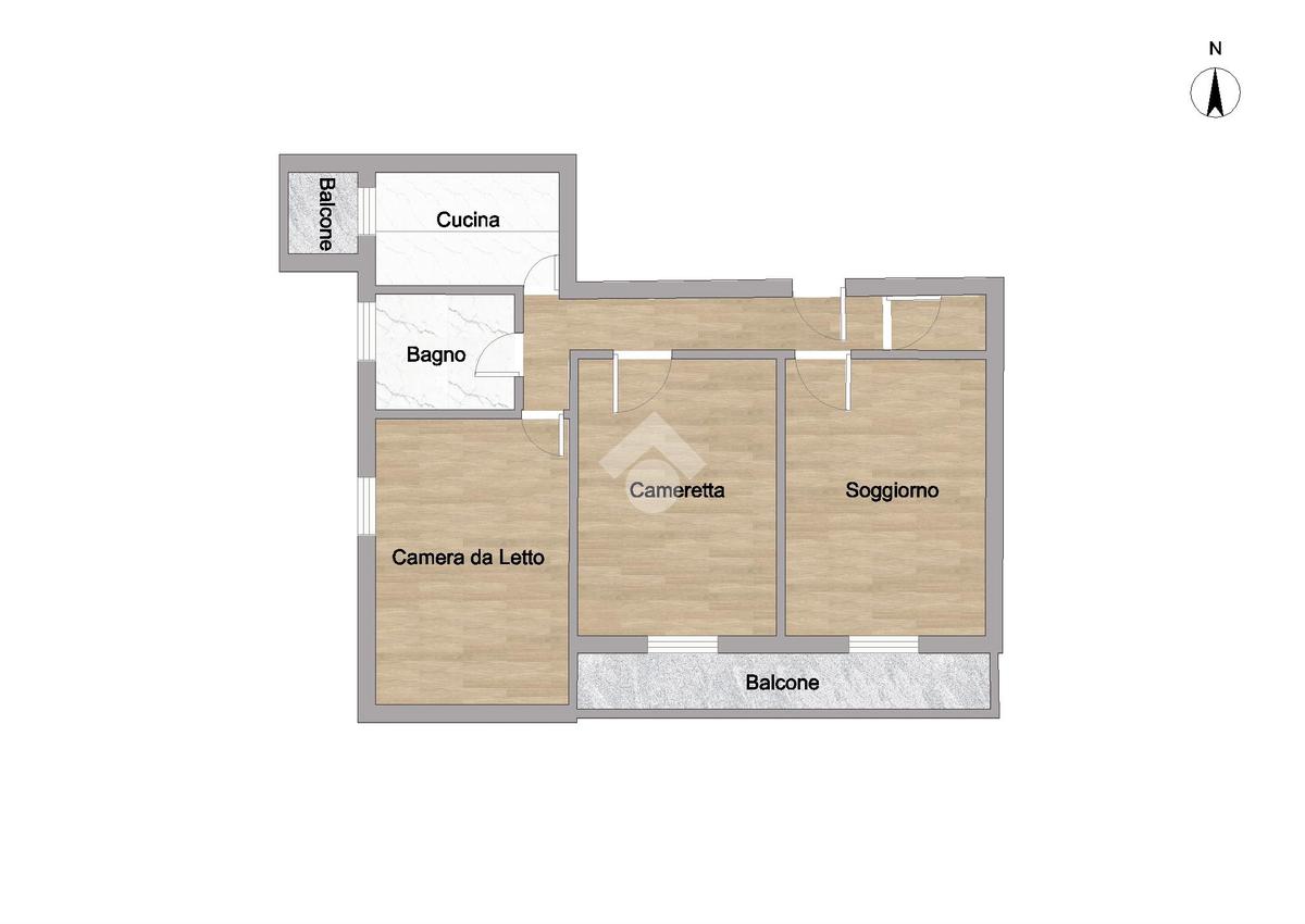 L'appartamento offre spazi ben distribuiti: entrando troviamo un ampio soggiorno e una cucina abitabile separata. La zona notte comprende una camera matrimoniale, una cameretta e un bagno con doccia. Completa la proprietà un balcone, accessibile dal soggiorno, che offre uno spazio esterno per godere di momenti all'aria aperta.