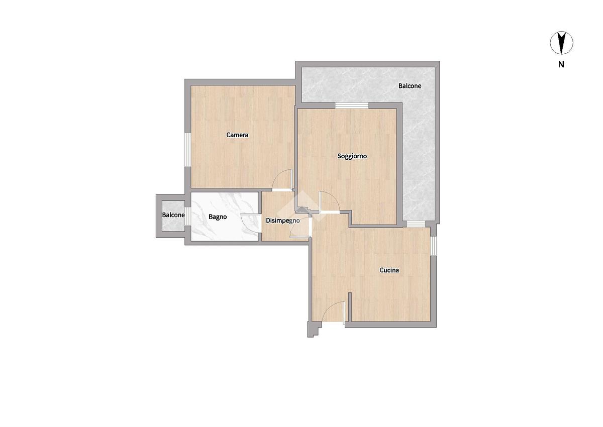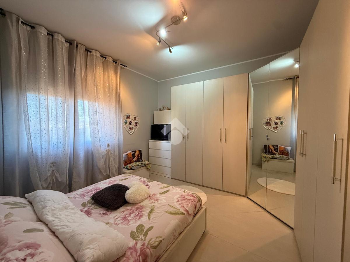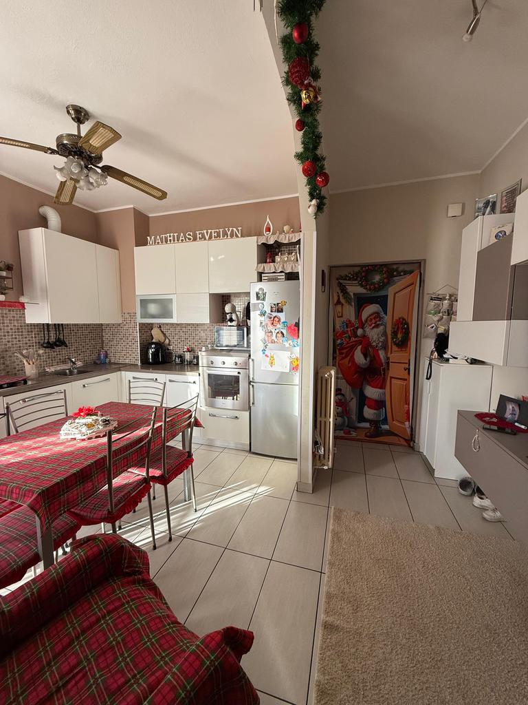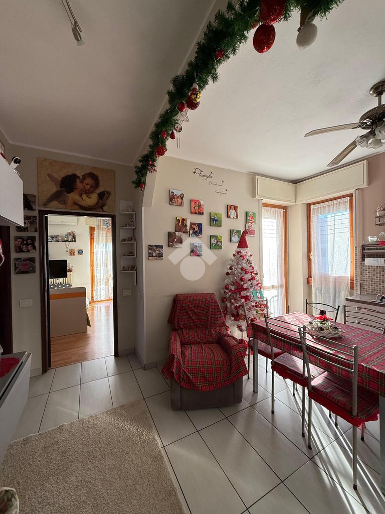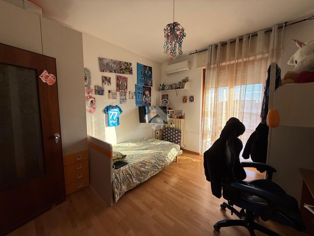 La zona giorno si apre su un balcone a L, accessibile sia dal soggiorno (attualmente adibito a cameretta) che dalla cucina, ideale per momenti di relax all'aperto. Il bagno è ben rifinito e spazioso e anch'esso dotato di balcone. L'immobile è dotato di riscaldamento centralizzato e aria condizionata, assicurando comfort in ogni stagione.