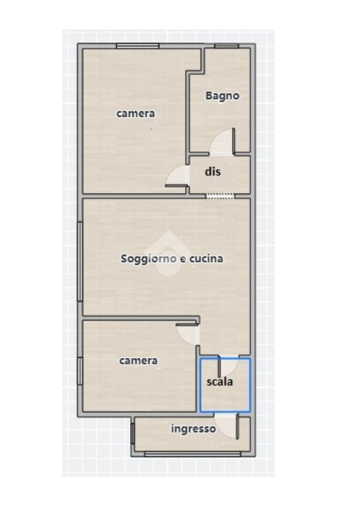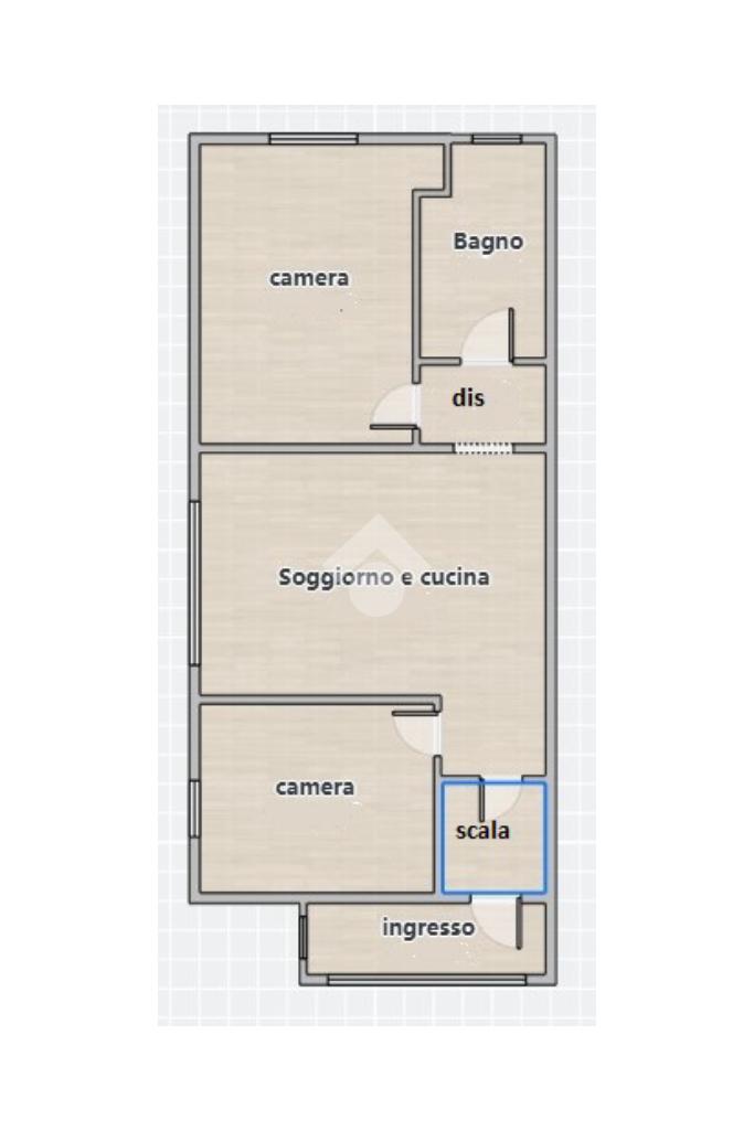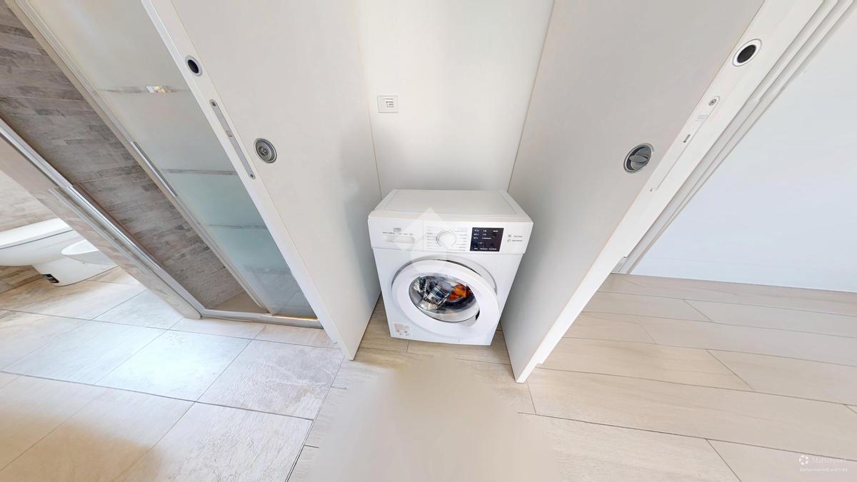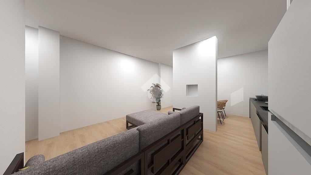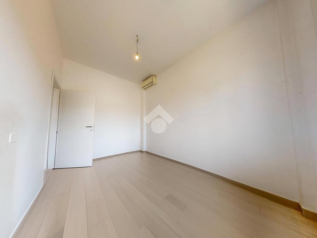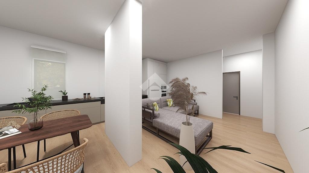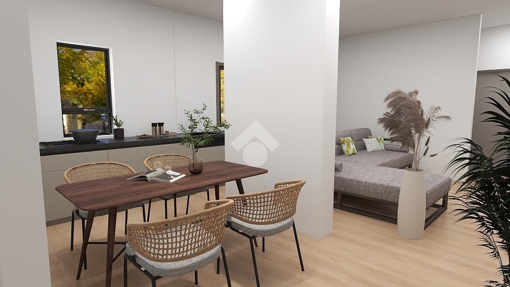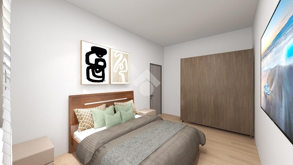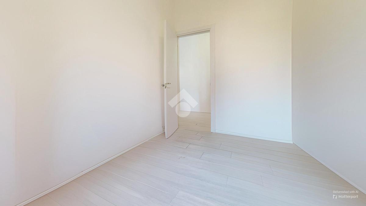 La zona giorno, caratterizzata dal luminoso soggiorno con angolo cottura, crea un perfetto spazio conviviale. Le due camere, rispettivamente una cameretta e una camera matrimoniale, sono posizionate ai lati della zona giorno. Affianco alla camera matrimoniale troviamo il bagno moderno, finestrato, dotato di box doccia.