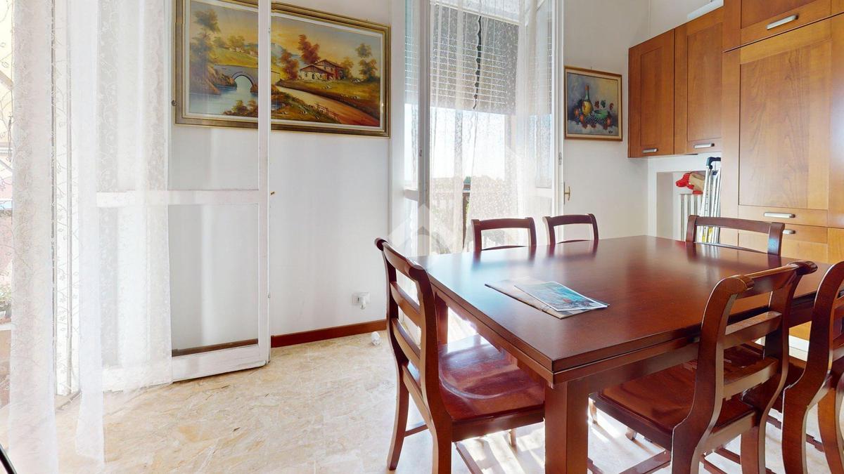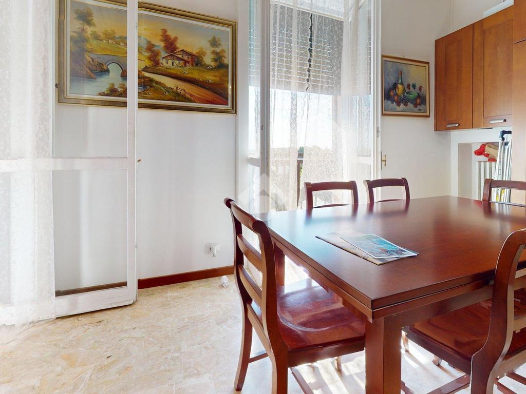 Situato al piano alto di un edificio civile del 1976, l'immobile offre una doppia esposizione che garantisce luminosità e una piacevole ventilazione naturale.