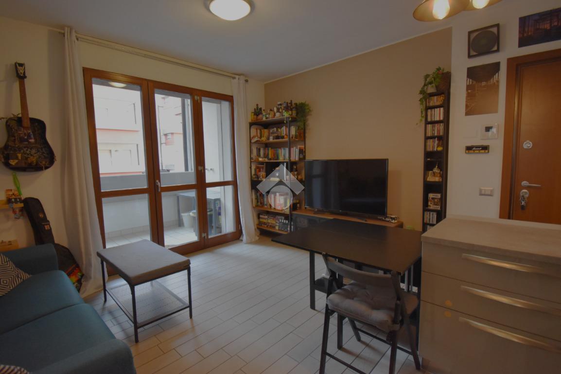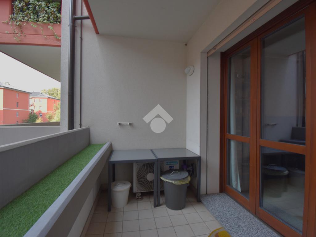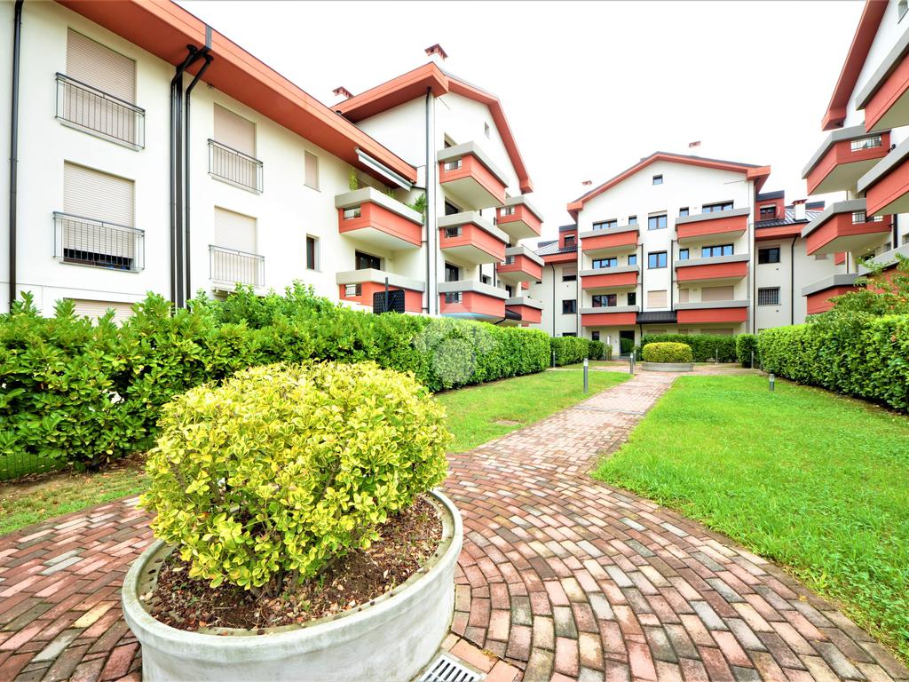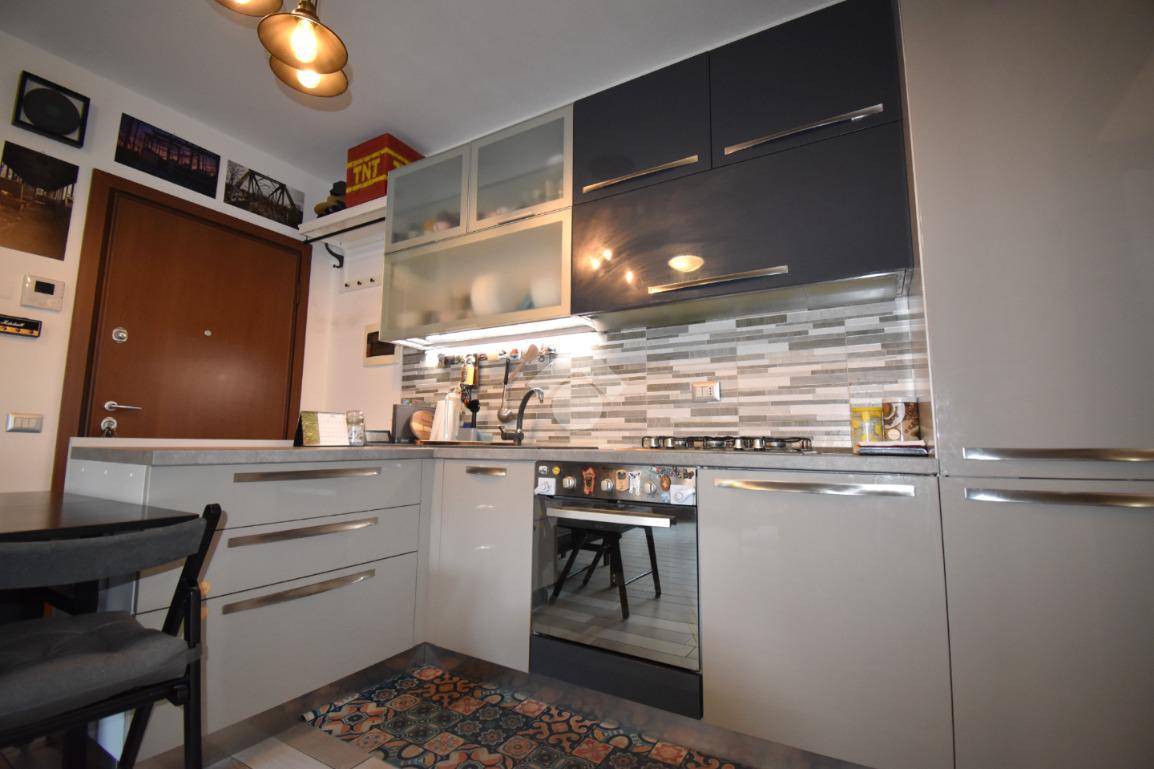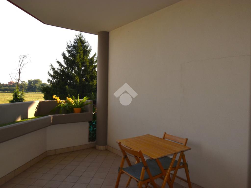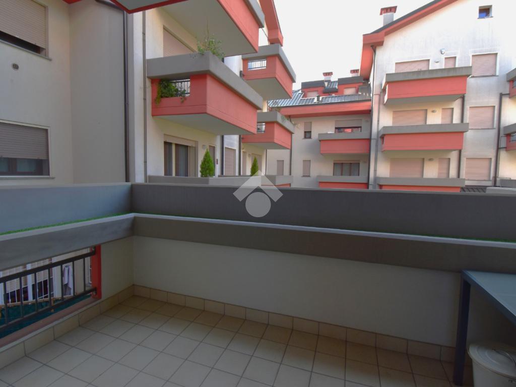 L'appartamento, situato al piano basso di un edificio costruito nel 2014, si estende su una superficie di 62 mq ed è così composto: luminoso soggiorno con cucina a vista e un ampio terrazzo, disimpegno con accesso al bagno completo e alla camera da letto, anch'essa servita da un bel terrazzo con vista aperta. L'immobile è dotato di aria condizionata, garantendo un ambiente fresco durante i mesi estivi. Completano la proprietà una cantina e un box auto.