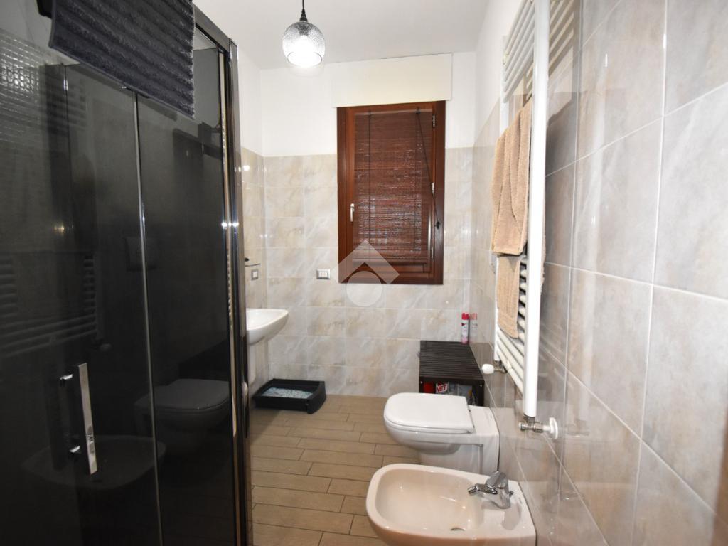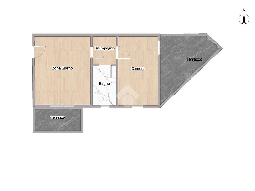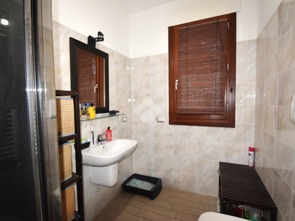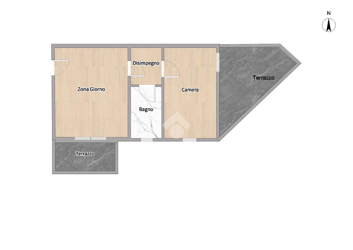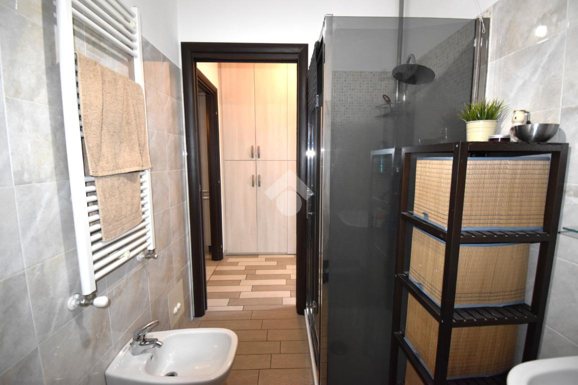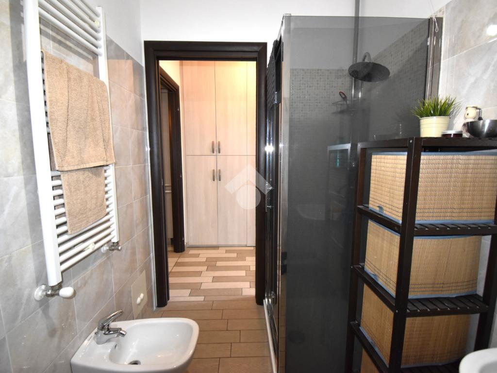 L'appartamento, situato al piano basso di un edificio costruito nel 2014, si estende su una superficie di 62 mq ed è così composto: luminoso soggiorno con cucina a vista e un ampio terrazzo, disimpegno con accesso al bagno completo e alla camera da letto, anch'essa servita da un bel terrazzo con vista aperta. L'immobile è dotato di aria condizionata, garantendo un ambiente fresco durante i mesi estivi. Completano la proprietà una cantina e un box auto.