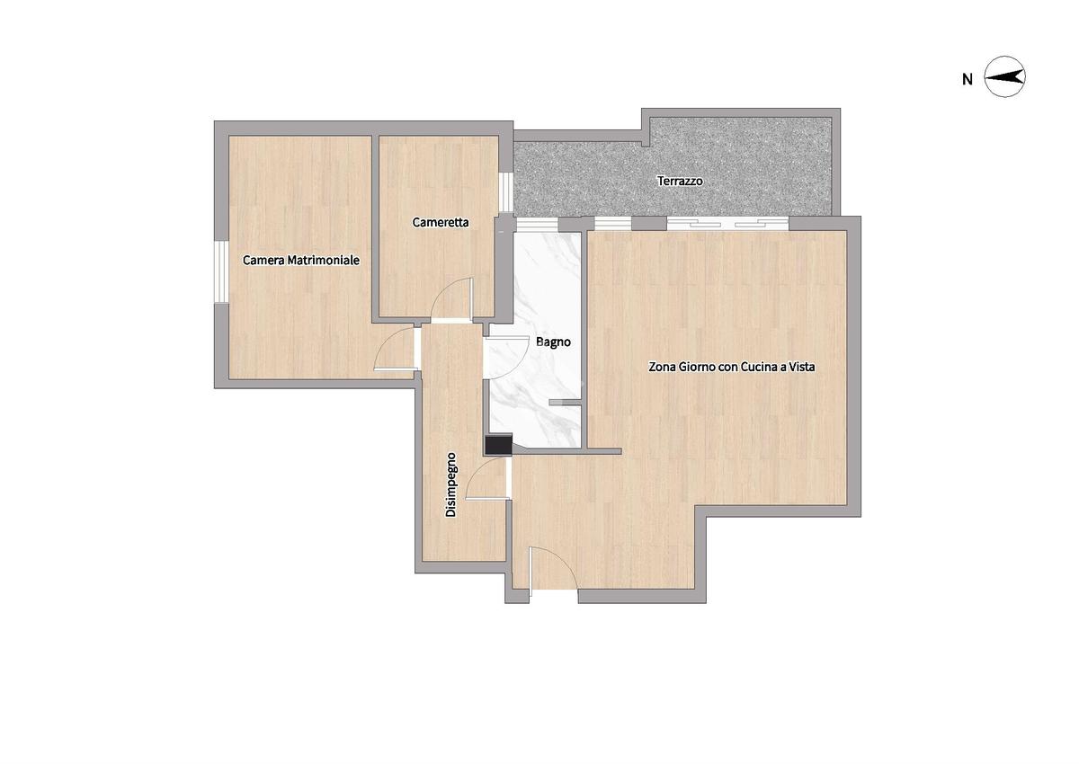 L'appartamento dispone anche di un box, acquistabile a parte, assicurando comodità per il parcheggio.