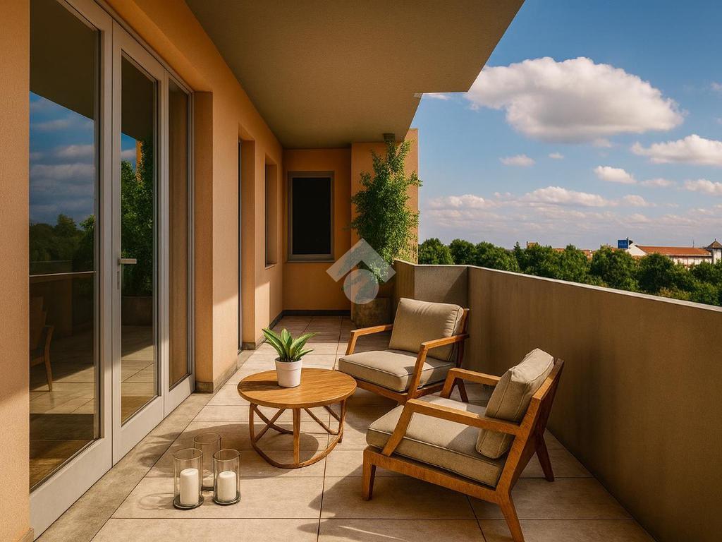 Entrando, troviamo la zona giorno, composta da un ampio soggiorno con cucina a vista, che affaccia su un bel terrazzo, ideale per trascorrere piacevoli momenti di relax all'aperto.